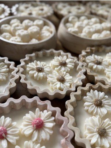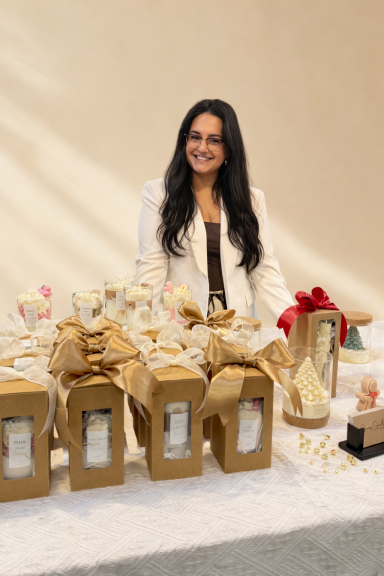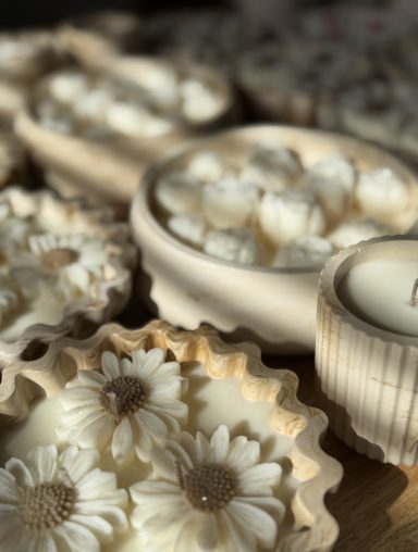 Naast de kaarsen zelf besteed ik ook veel aandacht aan mooie verpakkingen, zodat elk product perfect is om cadeau te geven. Daarnaast maak ik ook handgemaakte potjes van Jesmonite, die elke kaars een unieke en stijlvolle uitstraling geven.